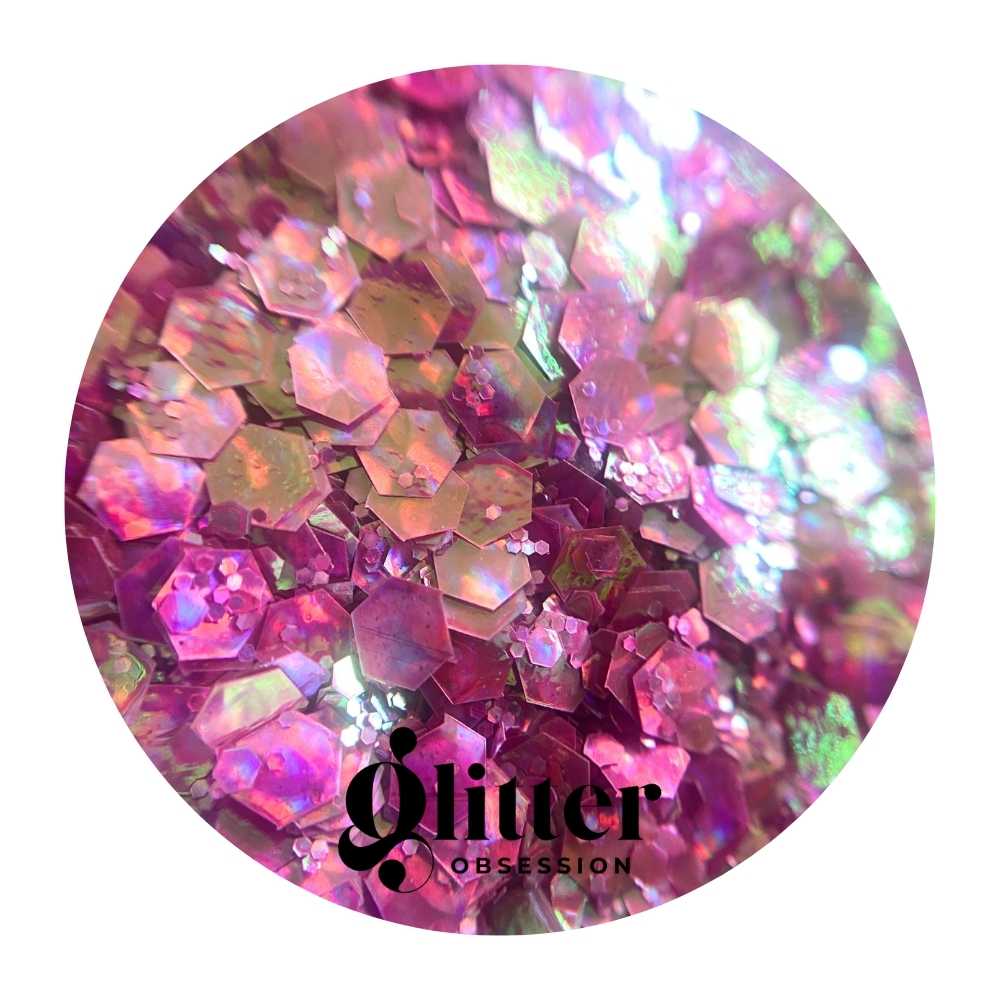 Texture: Chunky Mix of Iridescent and Holographic Glitters