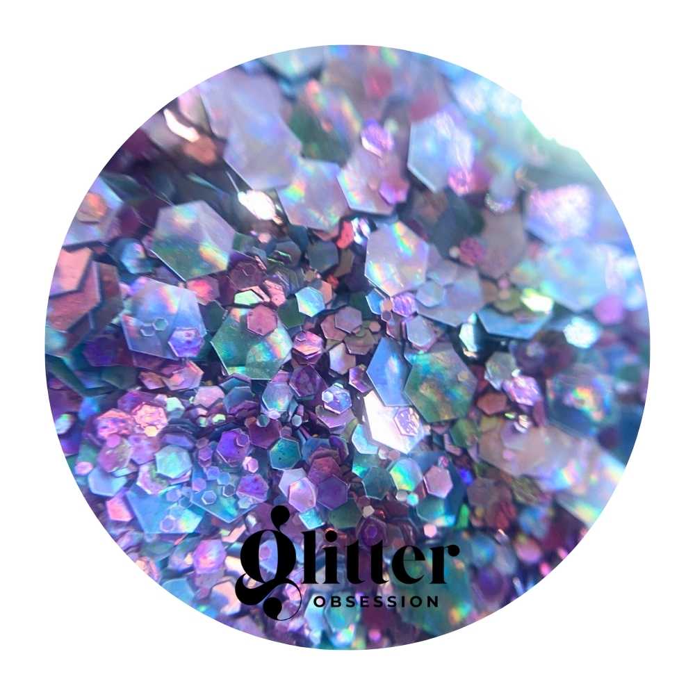 This dazzling mix is a dreamy blend of fine iridescent and holographic chunky glitters. With high holographic shine and silver reflections, each colour shifts beautifully, catching the light. Perfect for delicate yet dazzling nail & body art, make-up and creative craft projects.
