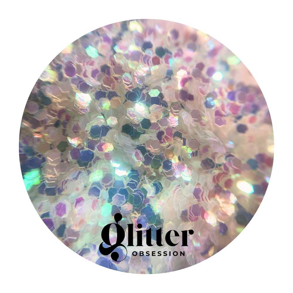 This medium size translucent glitter sparkles with a beautiful high iridescent shimmer. It catches the light from every angle, reflecting a rainbow of pearlescent hues that sparkle as you move. Perfect for nail & body art, make-up and creative craft projects.