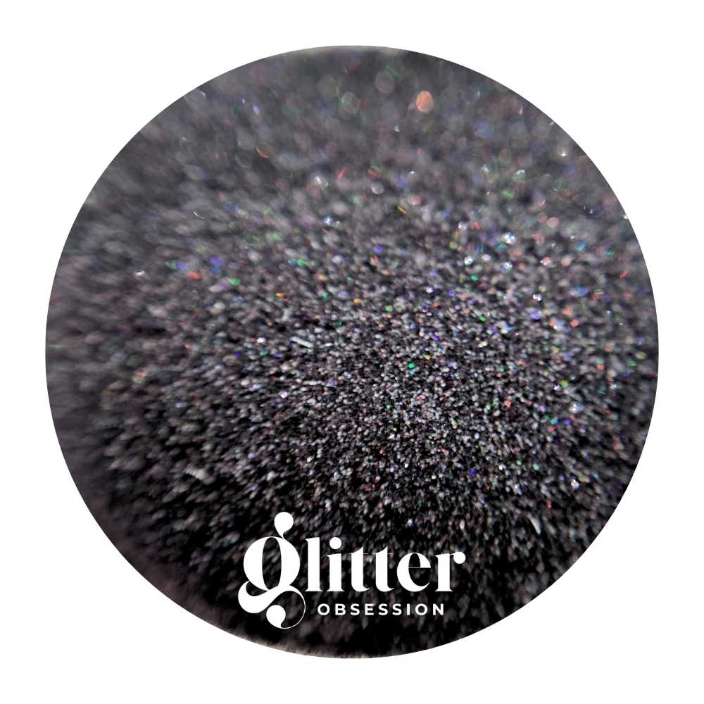 This ultra-fine black glitter has a beautiful soft iridescent shimmer. Its tiny sugar-like particles catch the light from every angle, reflecting a rainbow of subtle, pearlescent hues that change as you move. Perfect for adding a dreamy glowing touch in sugaring nail art, make-up and creative craft projects.